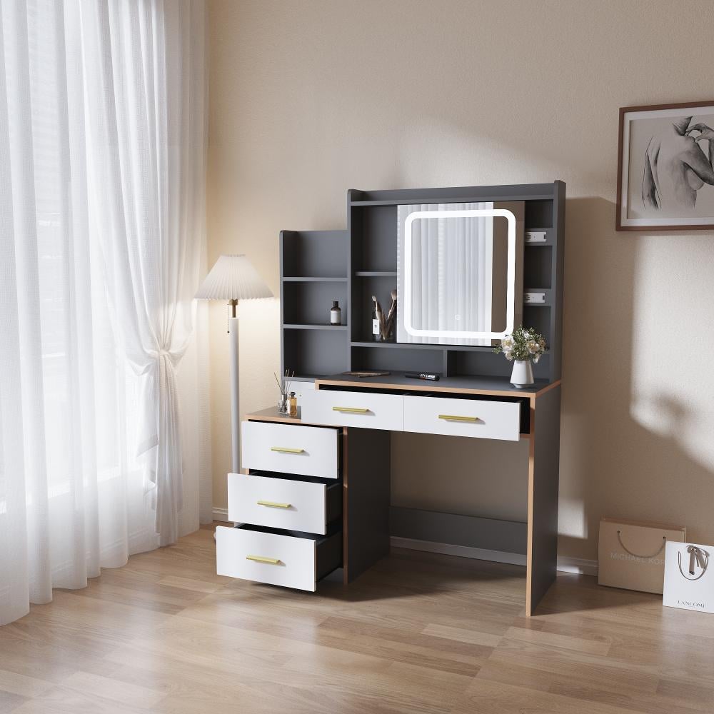 طاولة تزيين - تسريحة - لون رمادي وأبيض