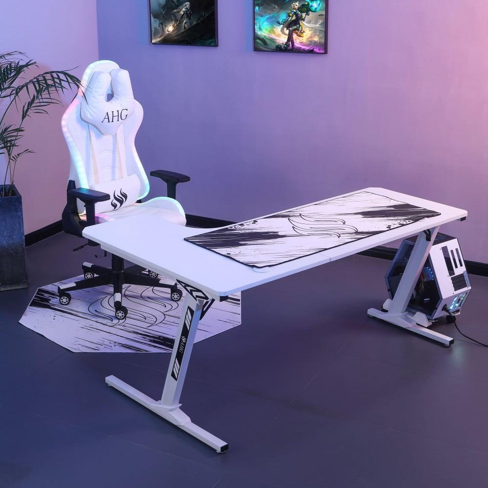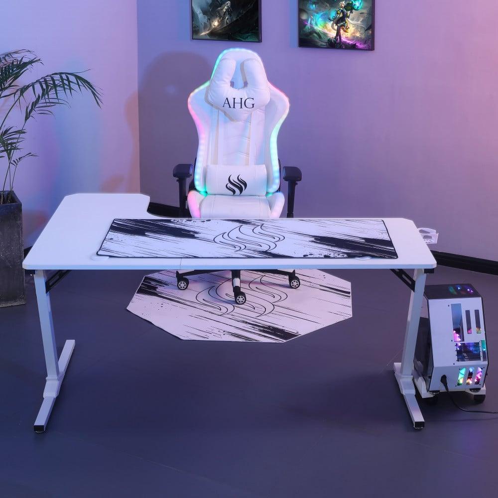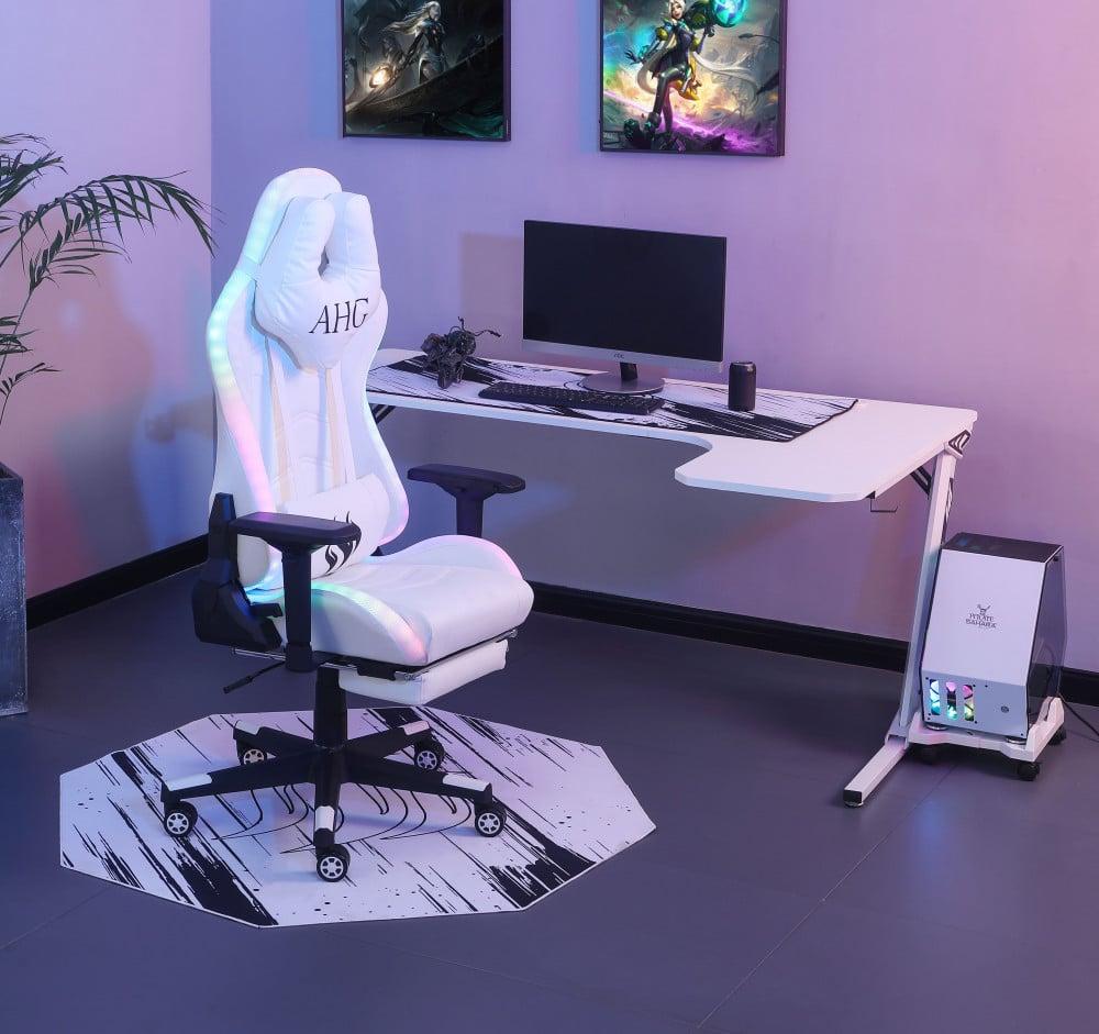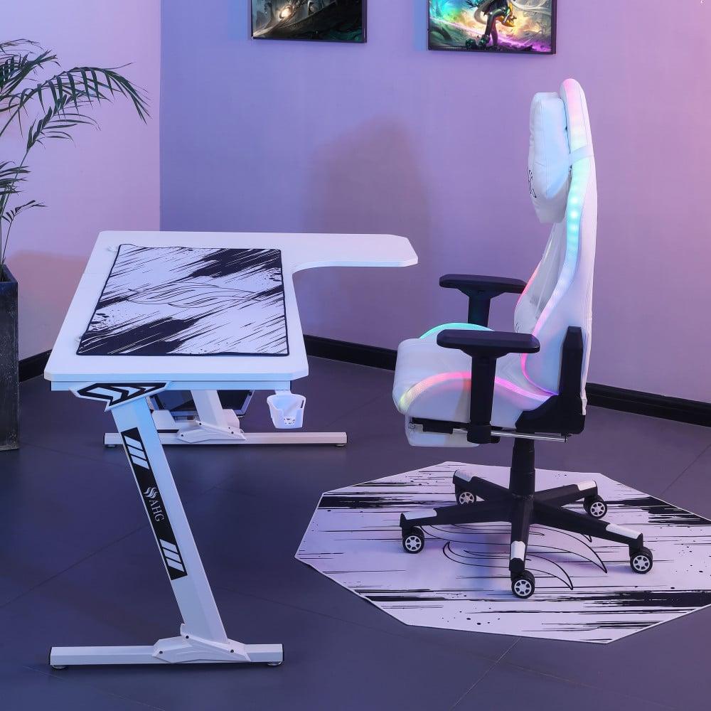كرسي قيمنق وطاولة زاوية - أبيض RGB