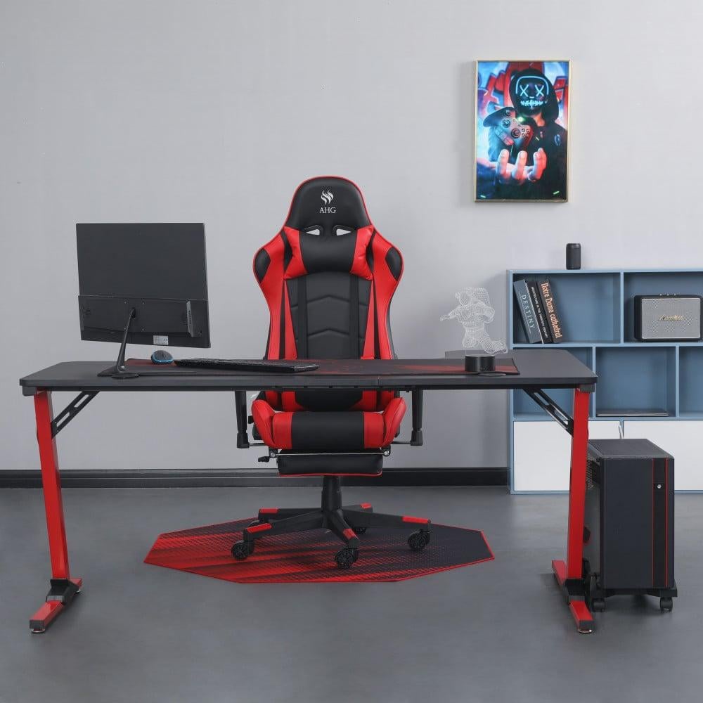 كرسي قيمنق وطاولة زاوية - أحمر