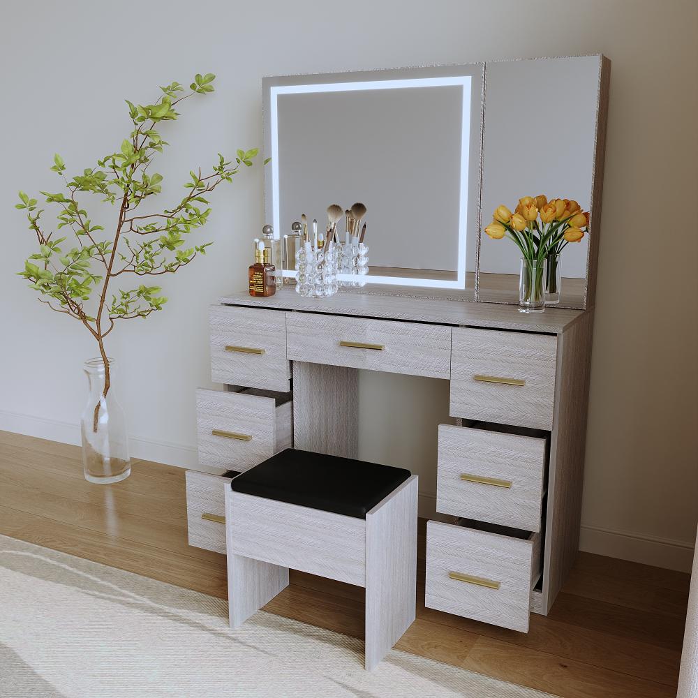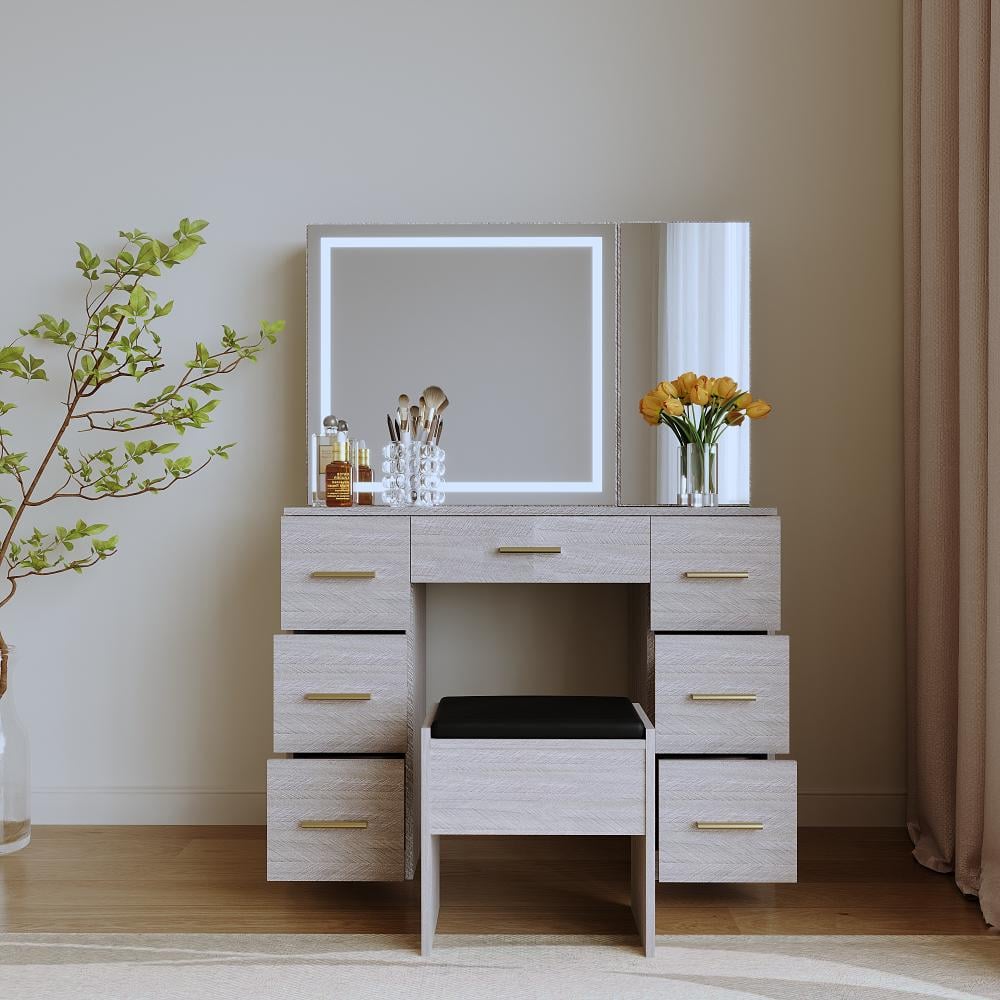 - مقعد التسريحة مشمول ويتم شحنه مع المنتج .