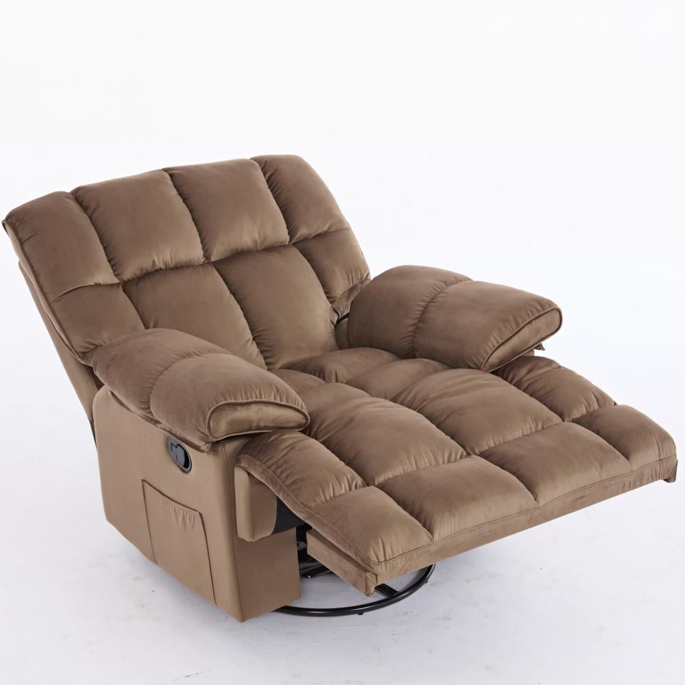 كرسي إسترخاء هزاز ودوار قماش مخمل ناعم جداً- بني