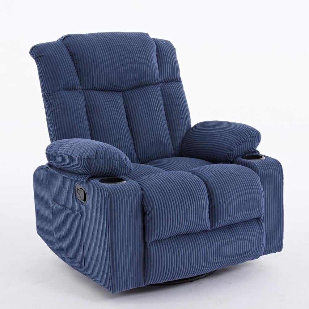 كرسي إسترخاء هزاز ودوار قماش مقلم - أزرق غامق