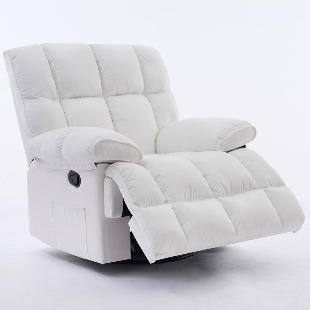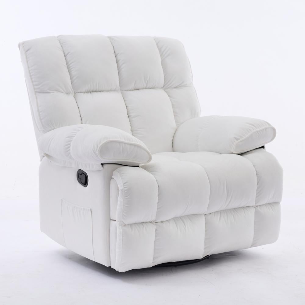 كرسي إسترخاء هزاز ودوار قماش مخمل ناعم جداً - أبيض