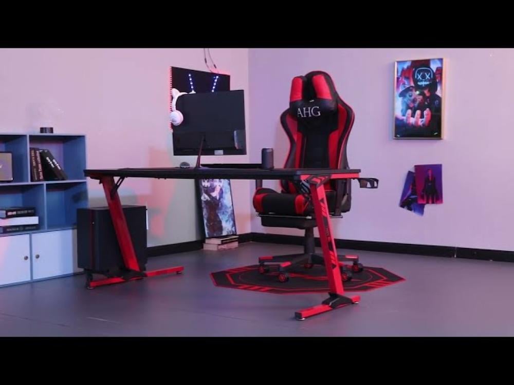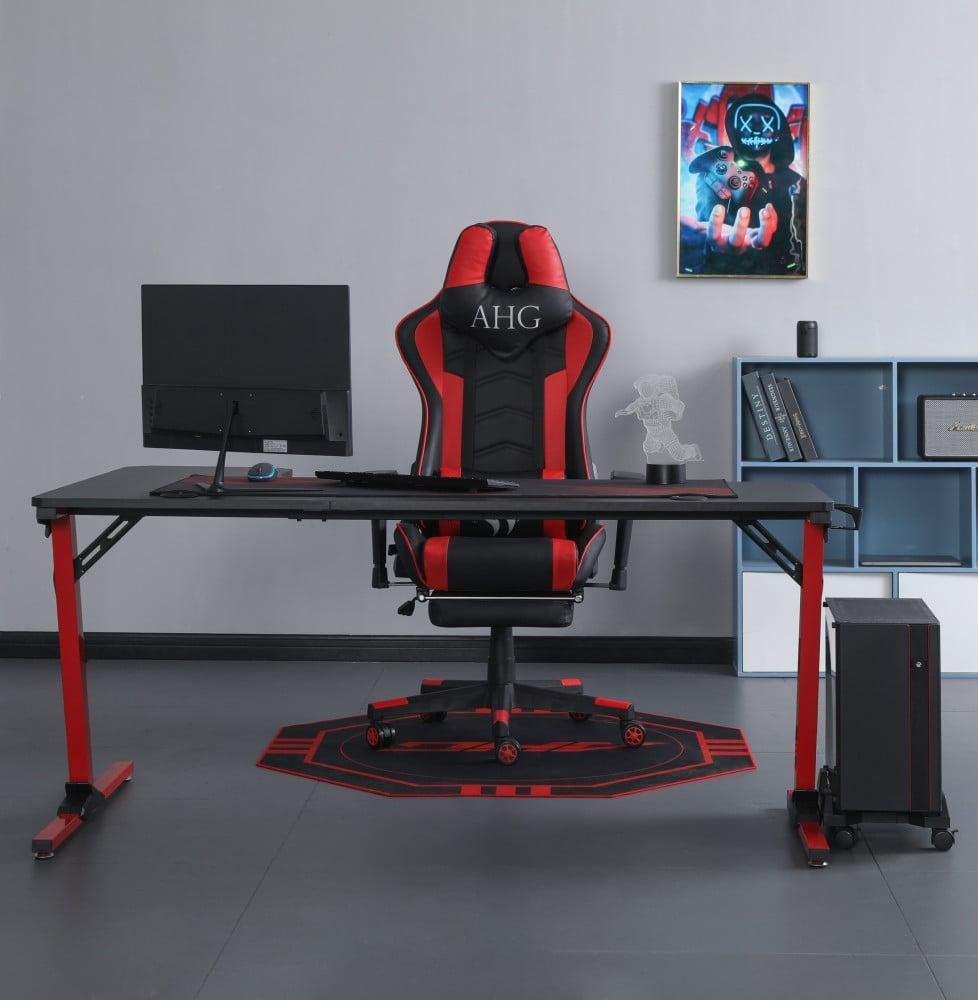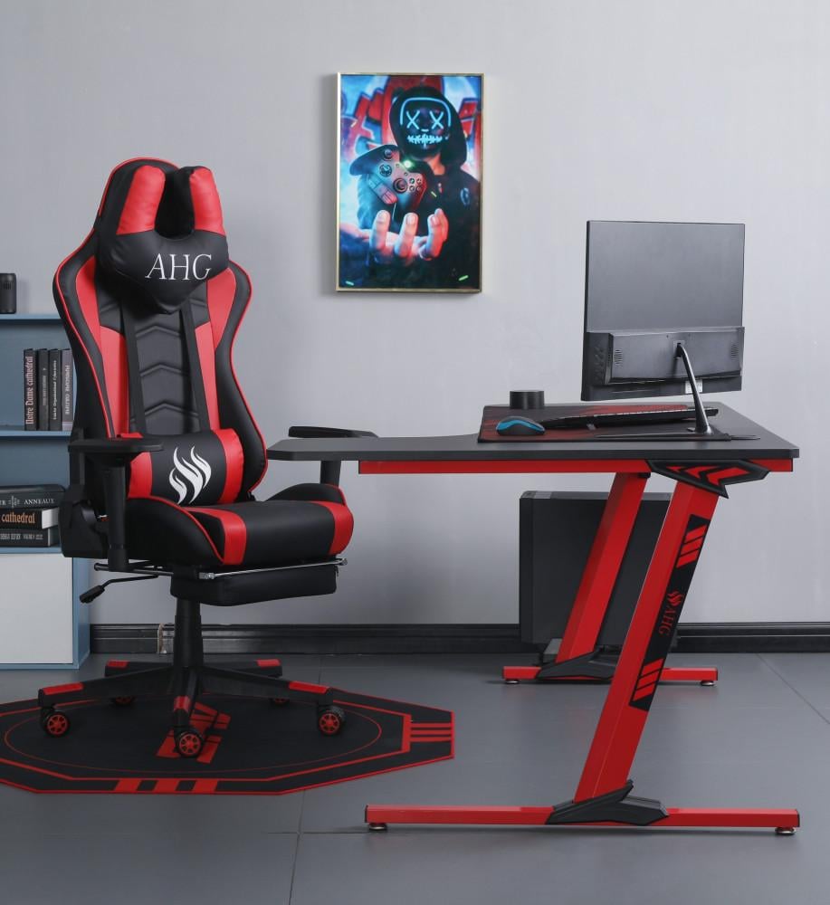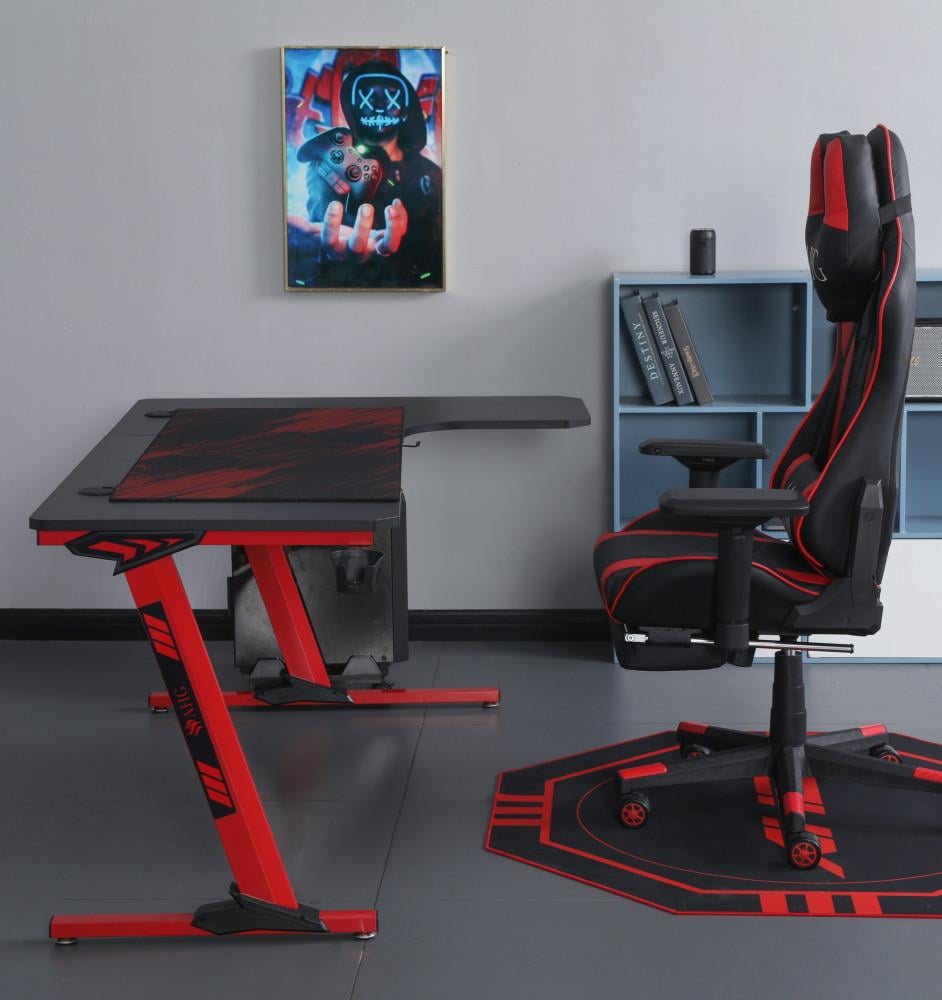 كرسي قيمنق وطاولة زاوية - أحمر