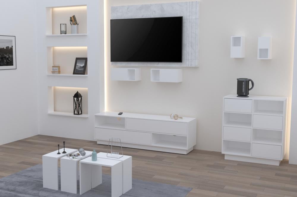 طقم طاولات وملحقاتها لغرفة معيشة 10 قطع - أبيض
