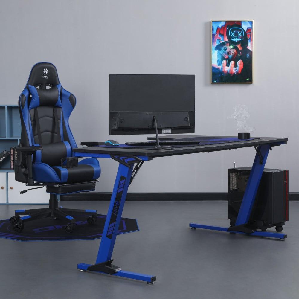 كرسي قيمنق وطاولة زاوية - أزرق