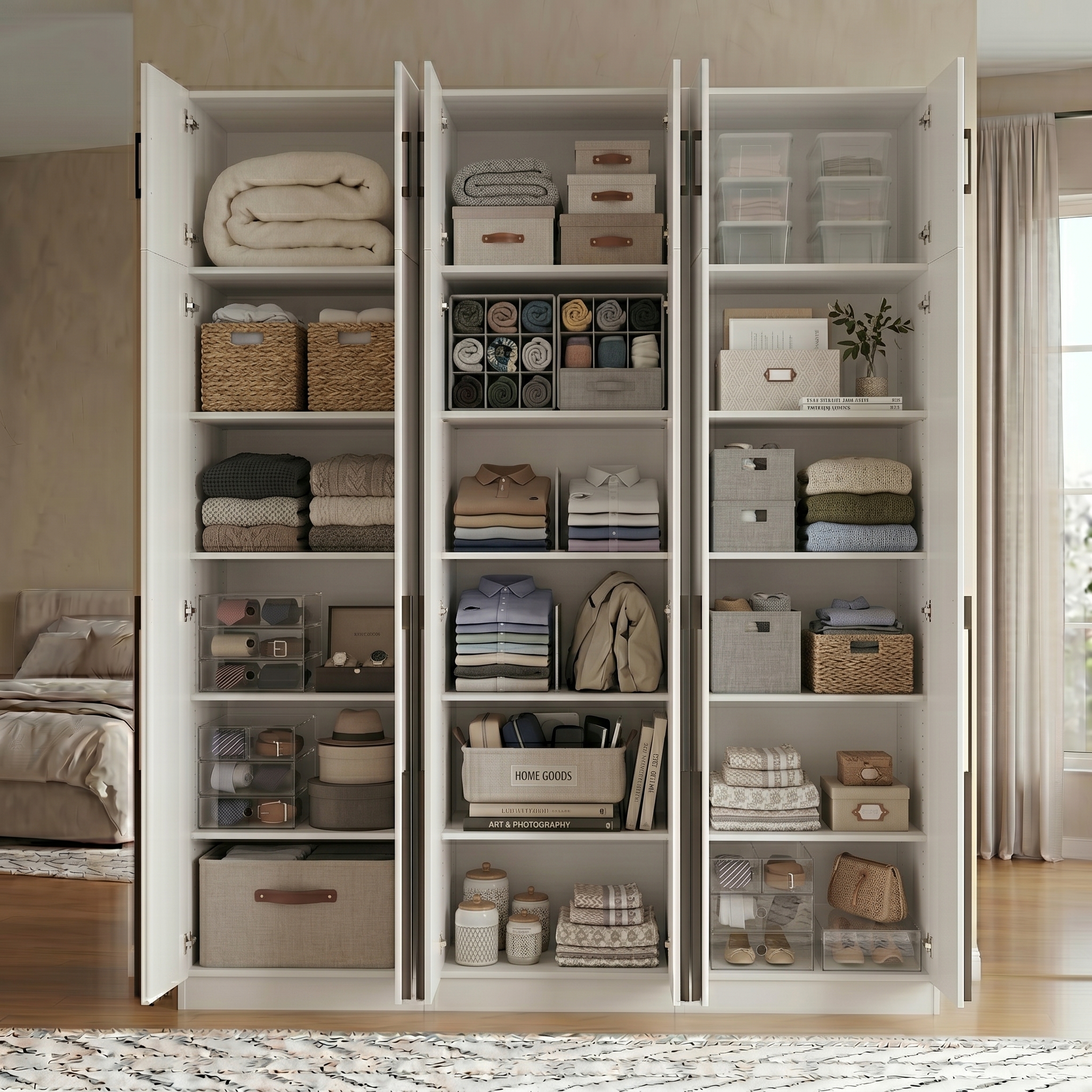 ارتقِ بمستوى التنظيم في غرفتك مع هذه الخزانة العصرية والعملية! يجمع هذا الدولاب بين التصميم الأنيق باللون الأبيض النقي والمرونة الفائقة، ليقدم لك حلاً ذكياً ومتكاملاً لتخزين ملابسك. بفضل تصميمه التركيبي المبتكر، يمنحك حرية كاملة في تخصيص مساحتك الداخلية بما يتناسب مع احتياجاتك المتغيرة، مما يجعله قطعة أثاث استثنائية تجمع بين رحابة التخزين والترتيب المتقن.