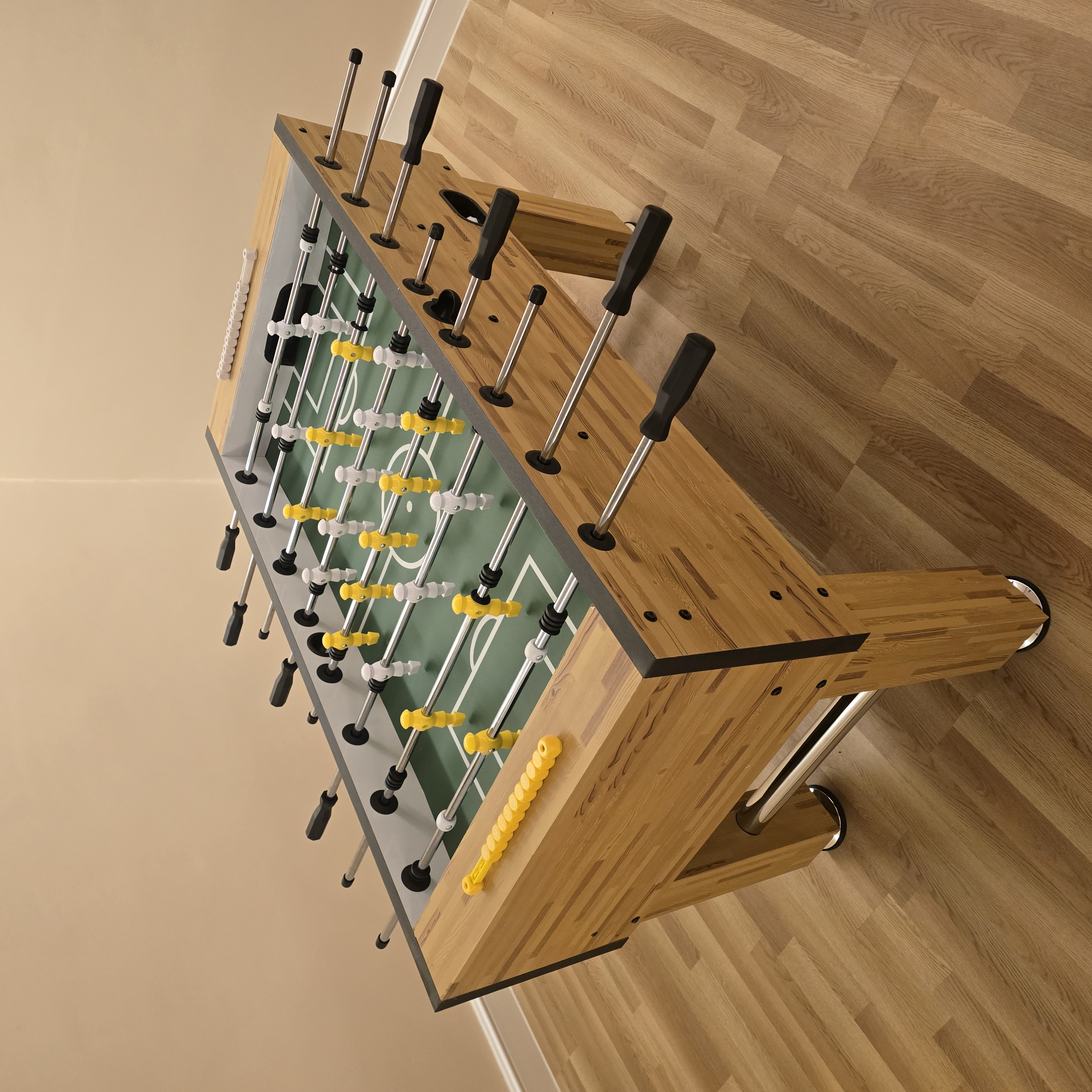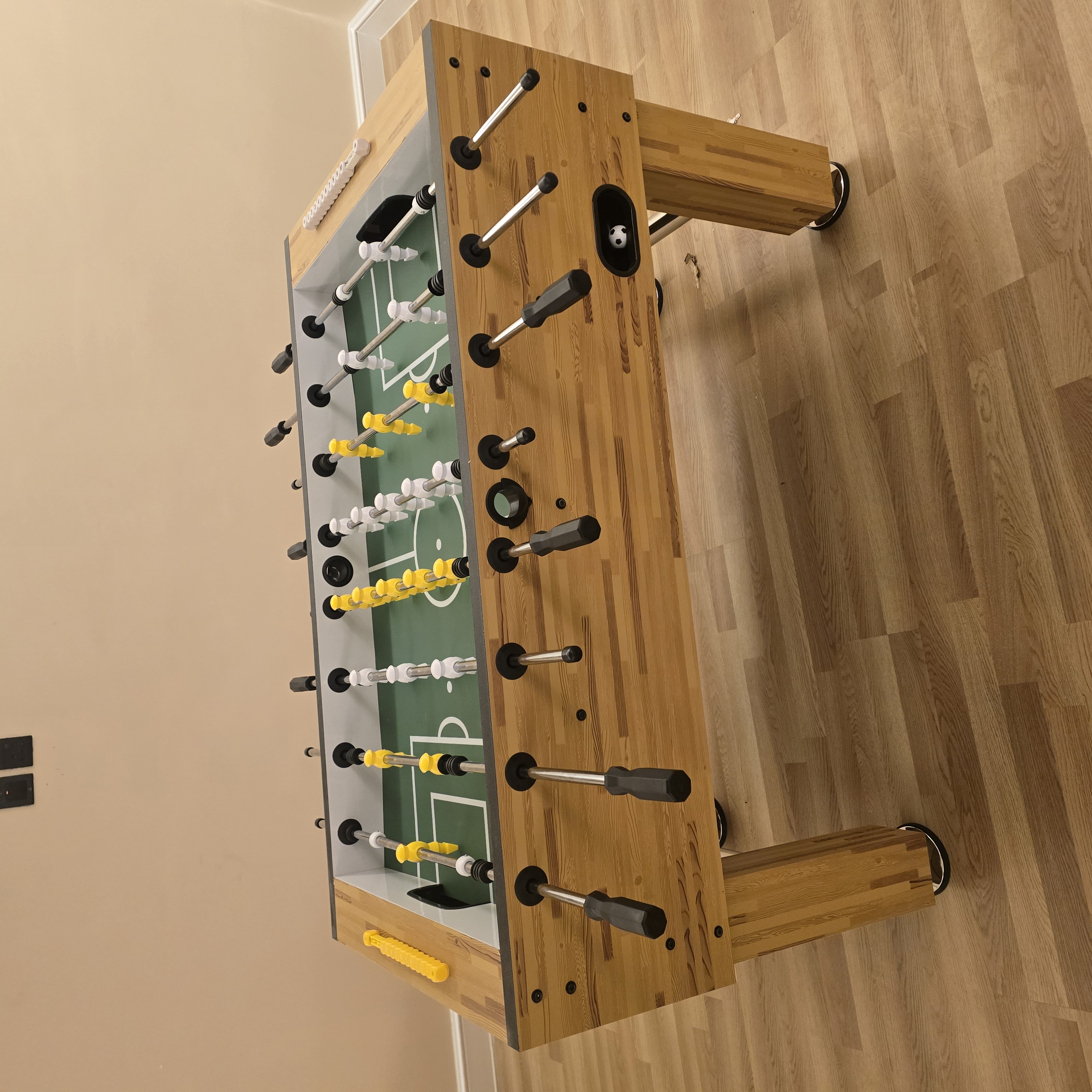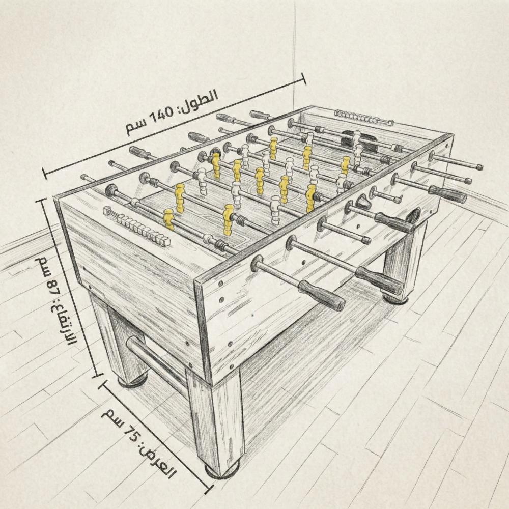 أضف طابع الحماس والمنافسة لمجلسك أو استراحتك مع طاولة كرة القدم الخشبية المميزة. تم تصميمها بحجم كبير وهيكل قوي لتوفر تجربة لعب ممتعة وواقعية للكبار والصغار. تجمع بين فخامة الشكل الخشبي ومتانة التصنيع لتتحمل اللعب القوي والتحديات المستمرة.