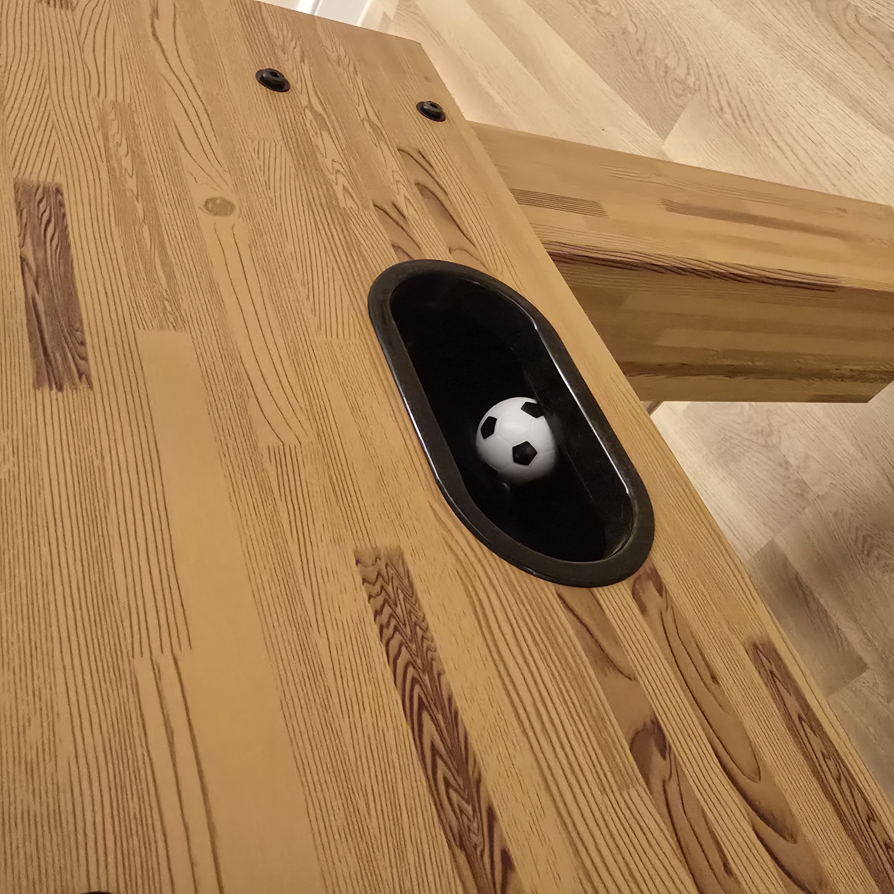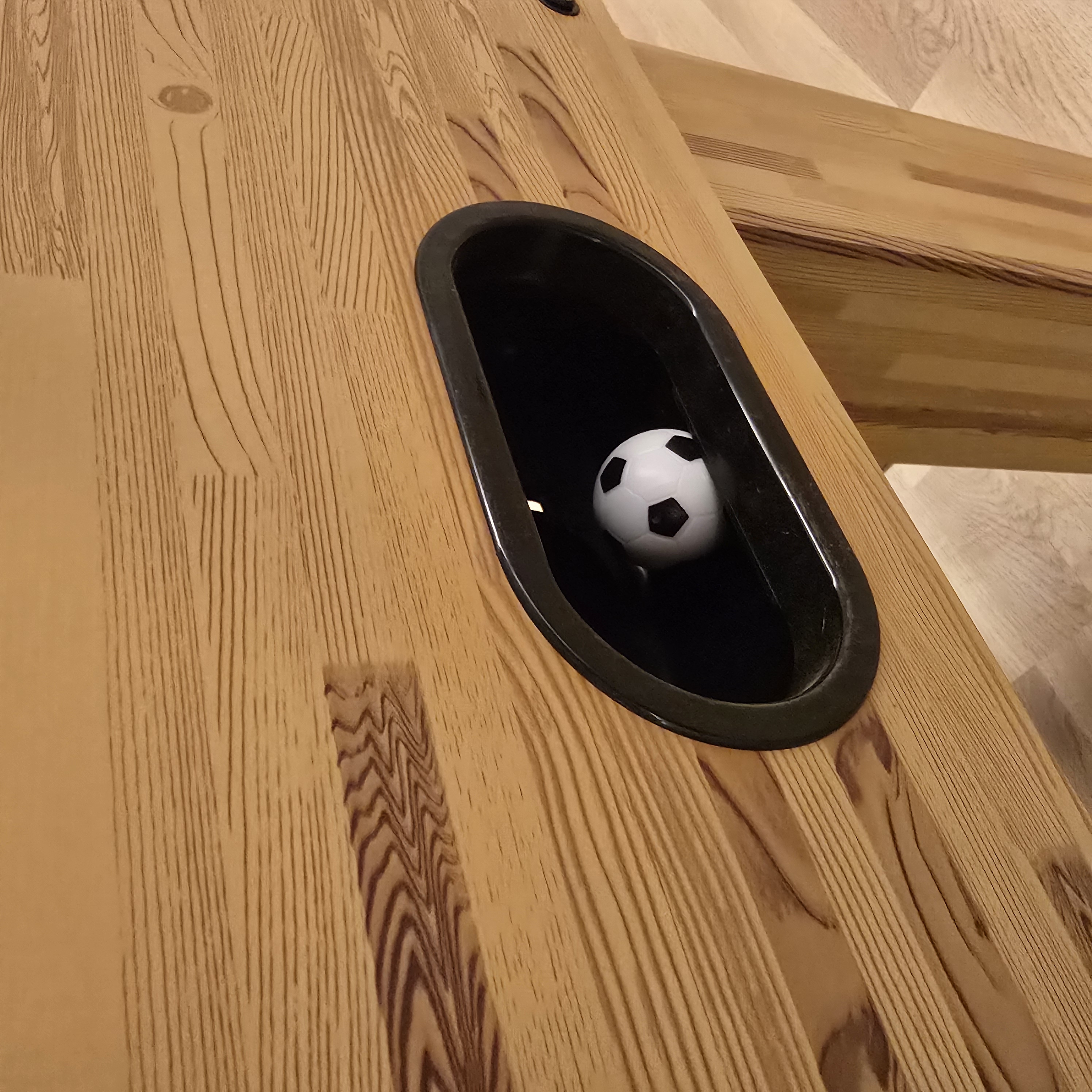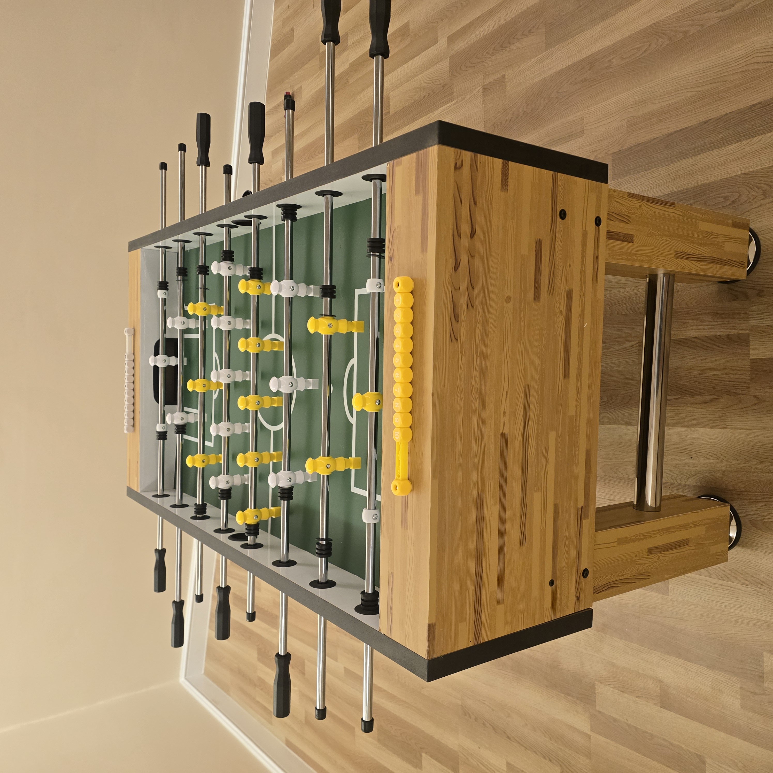 أضف طابع الحماس والمنافسة لمجلسك أو استراحتك مع طاولة كرة القدم الخشبية المميزة. تم تصميمها بحجم كبير وهيكل قوي لتوفر تجربة لعب ممتعة وواقعية للكبار والصغار. تجمع بين فخامة الشكل الخشبي ومتانة التصنيع لتتحمل اللعب القوي والتحديات المستمرة.