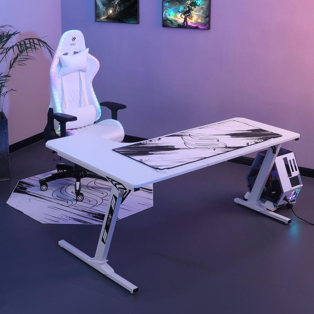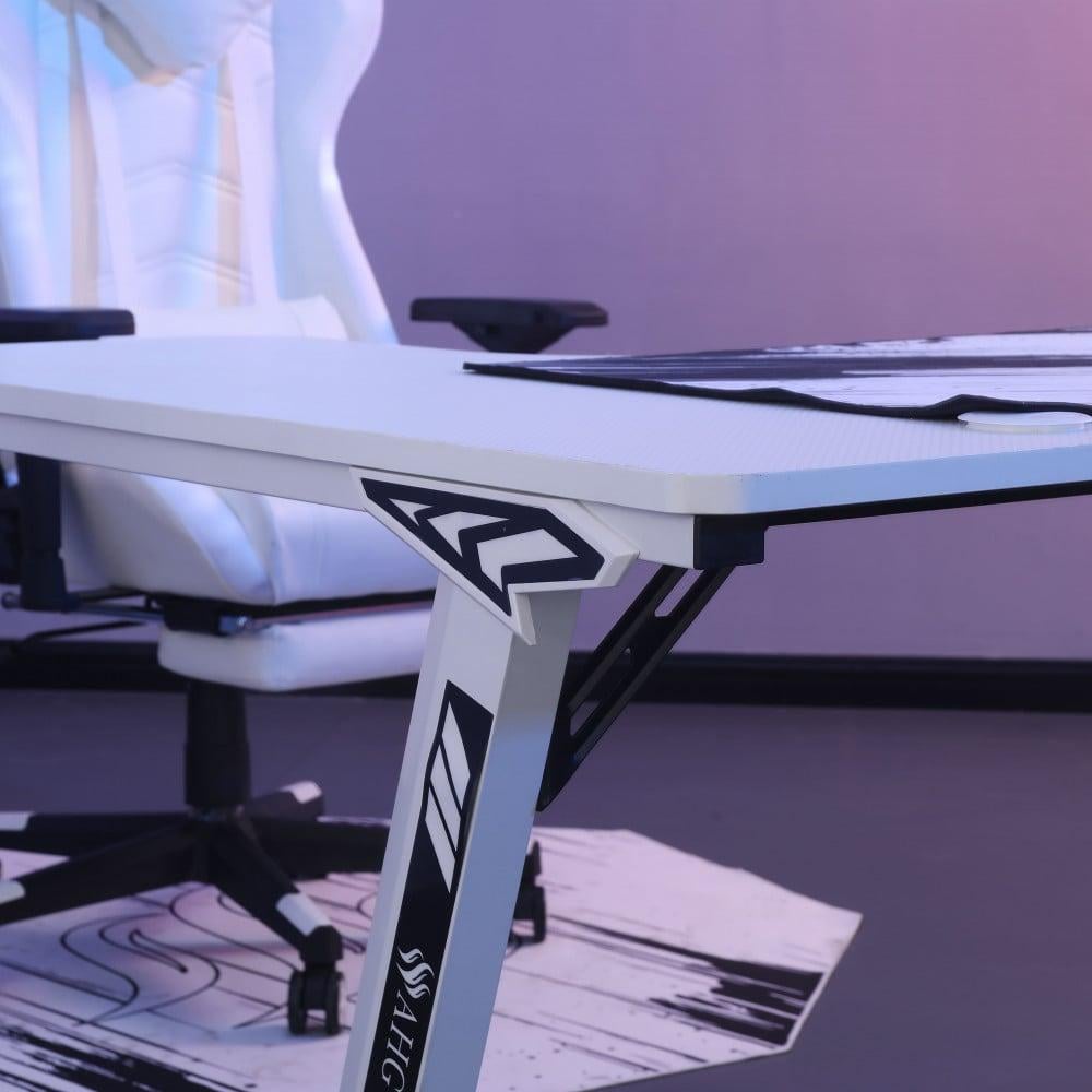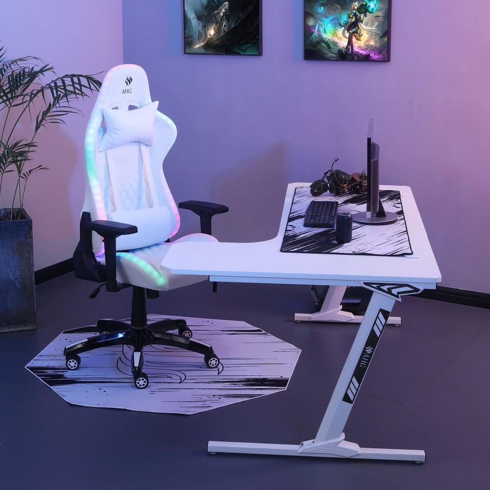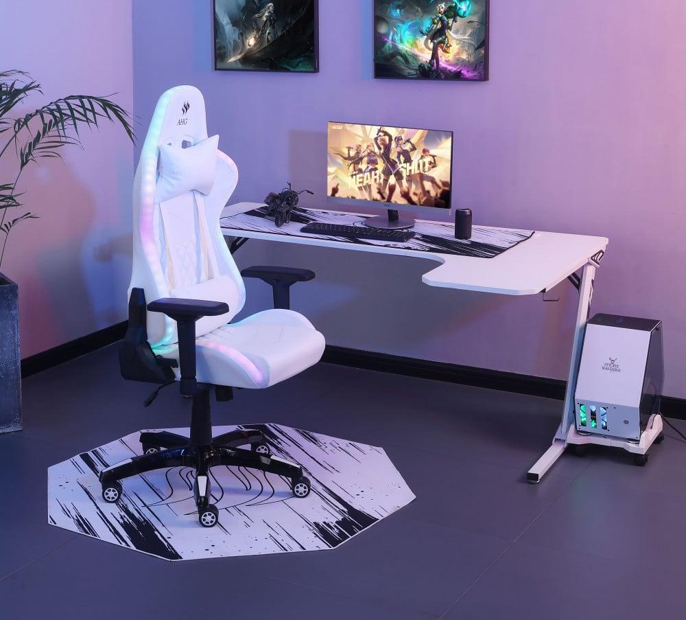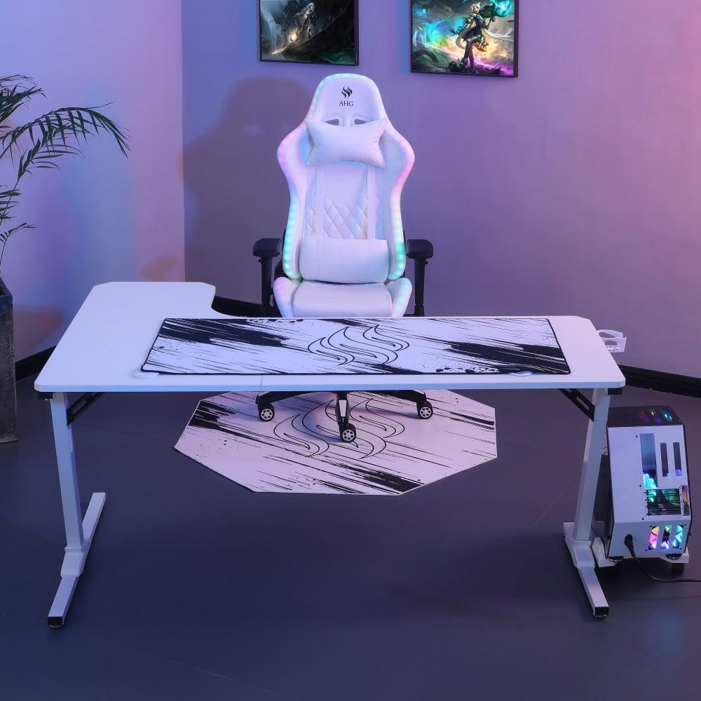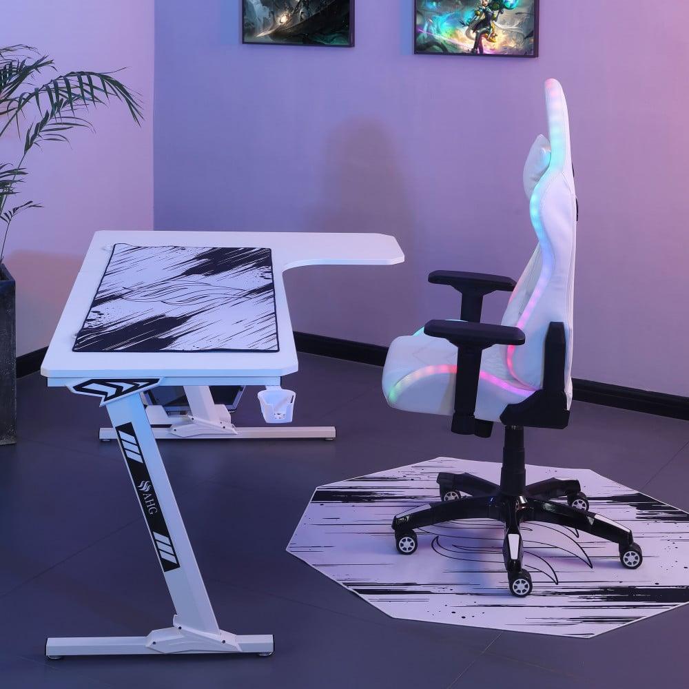 كرسي قيمنق وطاولة زاوية - أبيض RGB