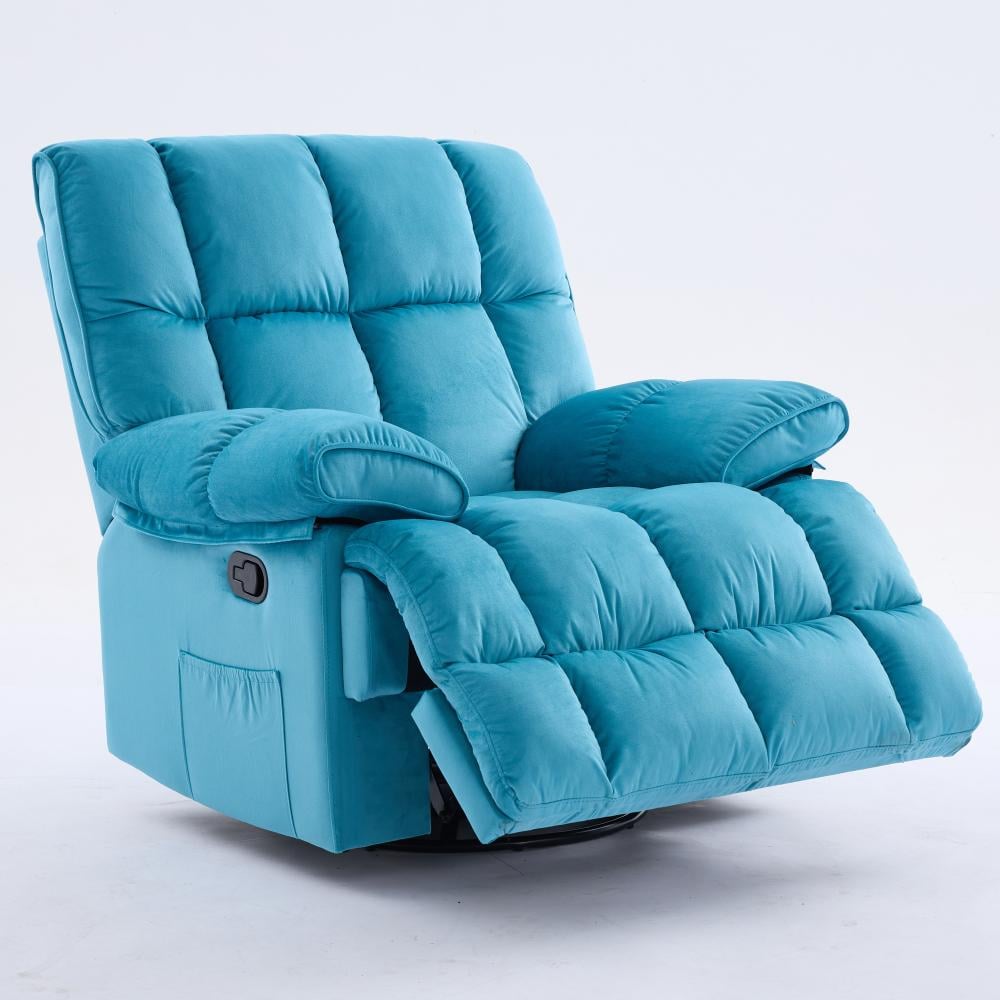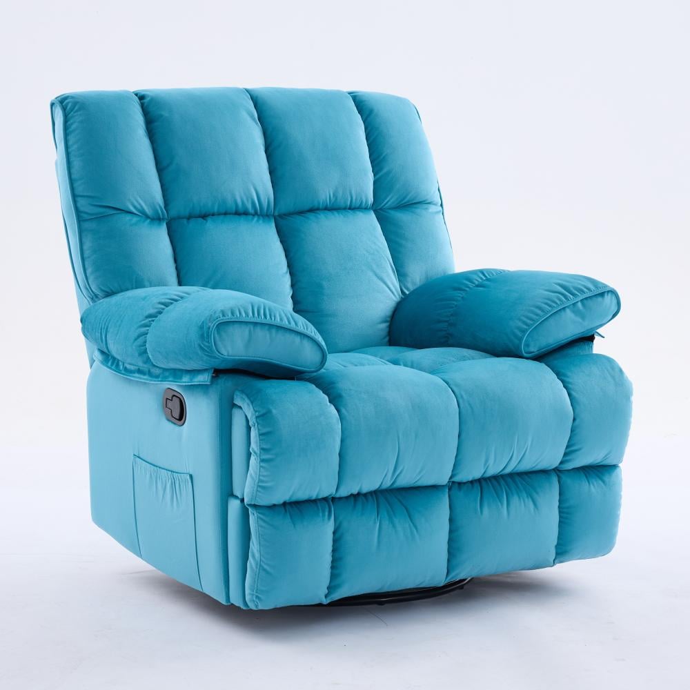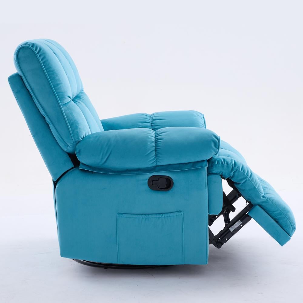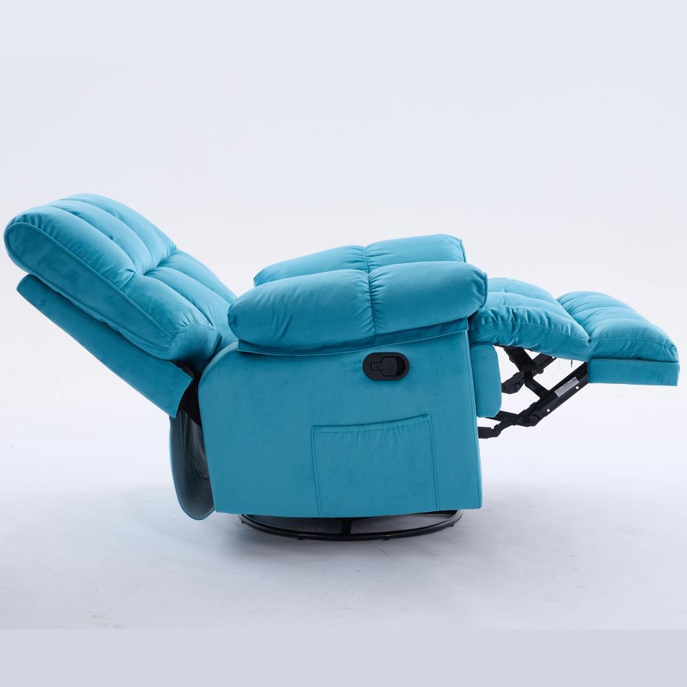 كرسي إسترخاء هزاز ودوار قماش مخمل ناعم جداً- أزرق فاتح