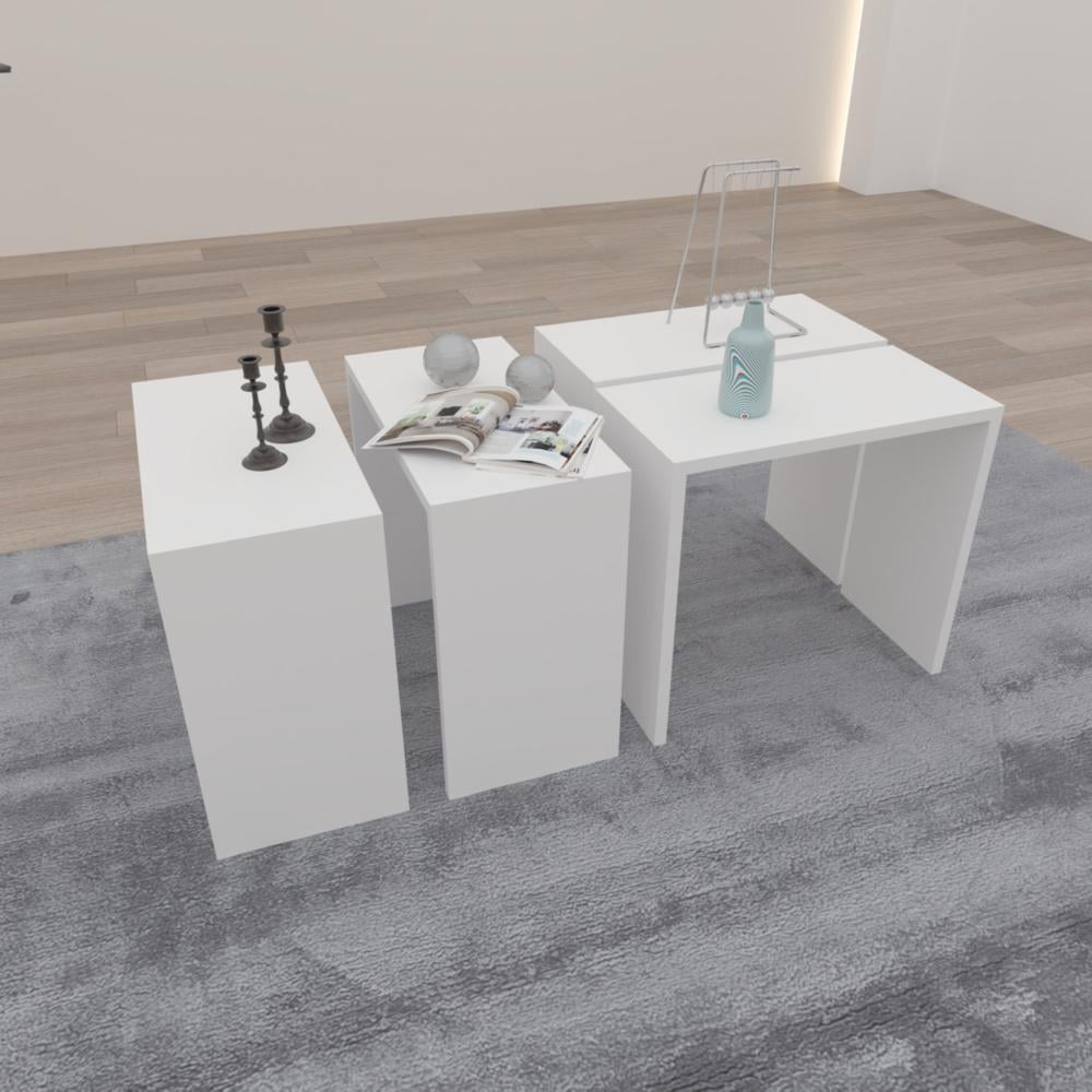 طقم طاولات خدمة مكون من 4 قطع يمكنك إستخدامها كطاولة كبيرة عند وضعها بجانب بعضها او إستخدامها كطاولات متفرقة حسب حاجتك .